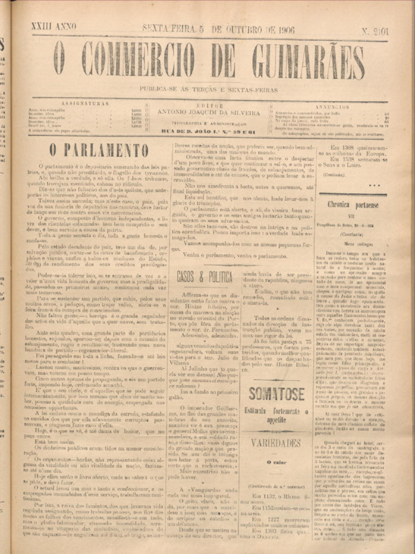 Comércio de Guimarães, nº 2105, de 23/10/1906