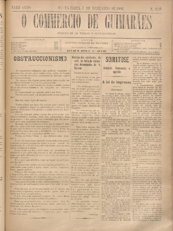 Comércio de Guimarães, nº 2118, de 07/12/1906