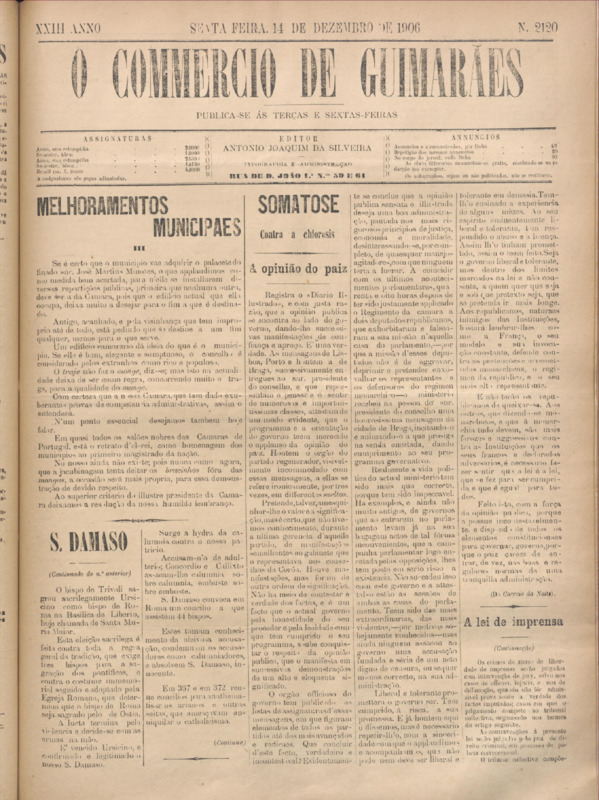 Comércio de Guimarães, nº 2120, de 14/12/1906