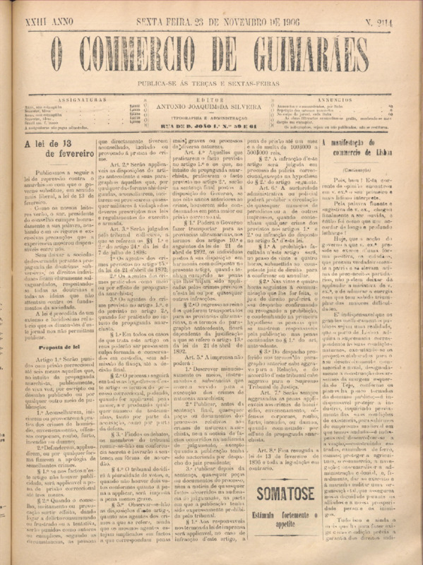 Comércio de Guimarães, nº 2111, de 13/11/1906