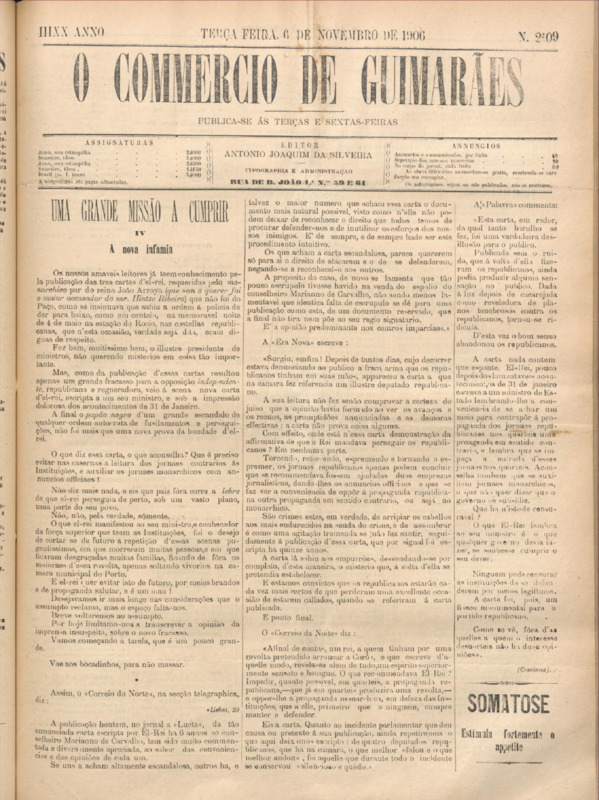 Comércio de Guimarães, nº 2103, de 12/10/1906