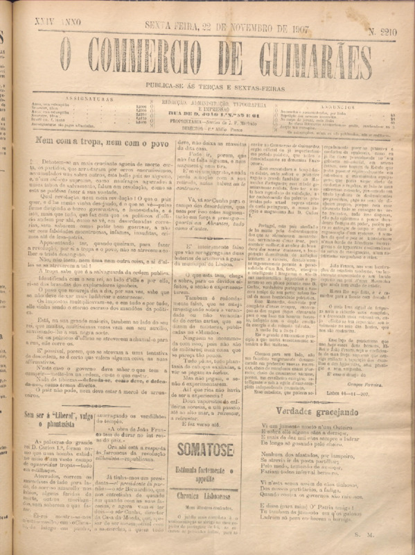 Comércio de Guimarães, nº 2210, de 22/11/1907
