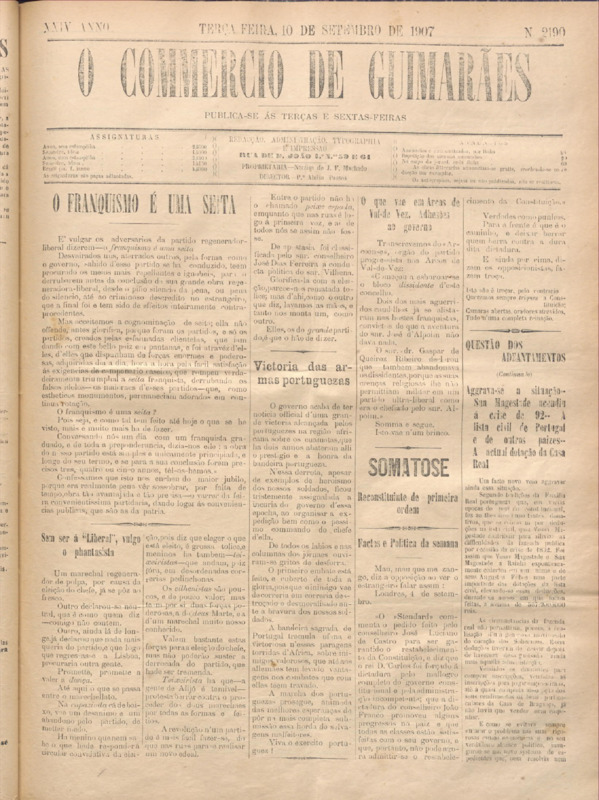 Comércio de Guimarães, nº 2190, de 10/09/1907