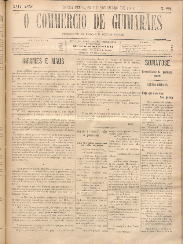 Comércio de Guimarães, nº 2211, de 26/11/1907