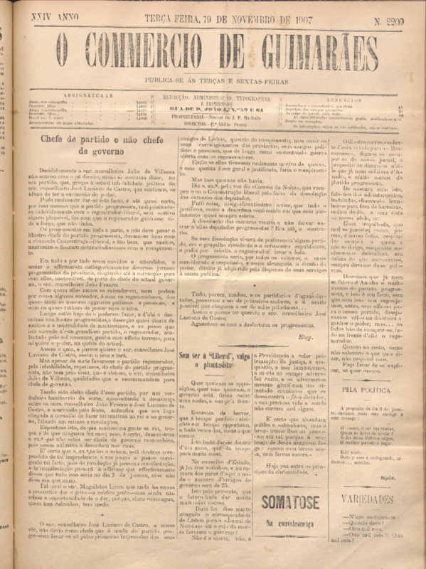 Comércio de Guimarães, nº 2209, de 19/11/1907