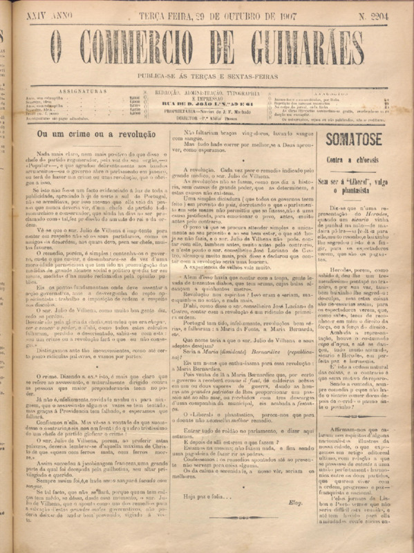 Comércio de Guimarães, nº 2204, de 29/10/1907