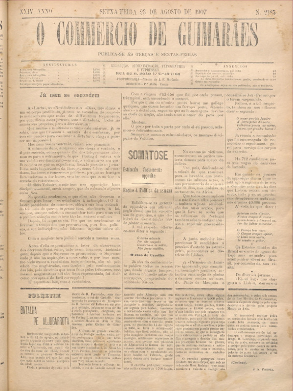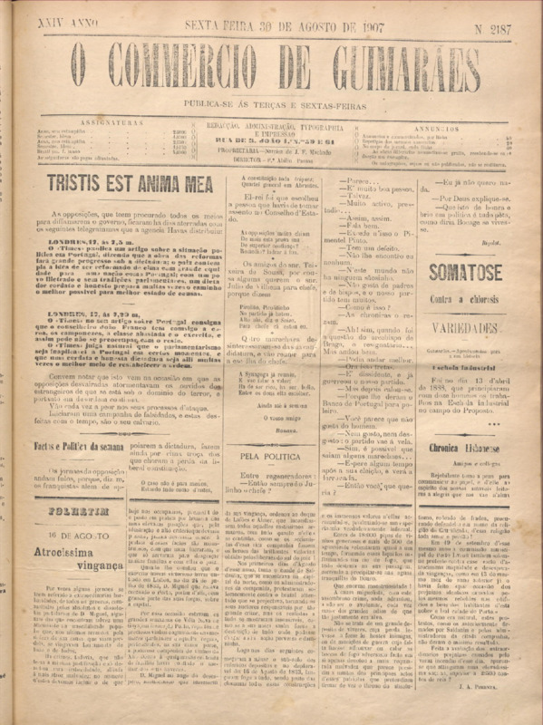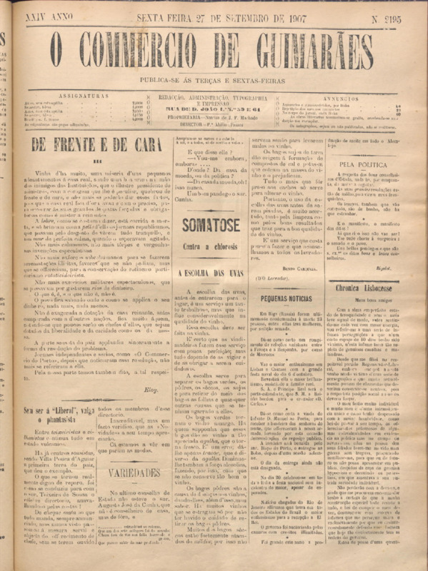 Comércio de Guimarães, nº 2186, de 27/08/1907