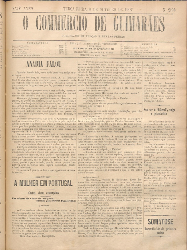 Comércio de Guimarães, nº 2198, de 08/10/1907