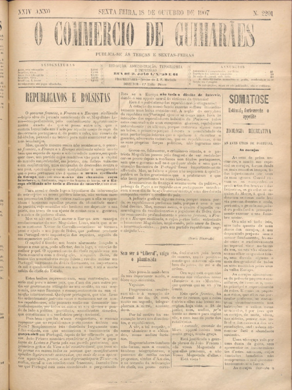 Comércio de Guimarães, nº 2201, de 18/10/1907