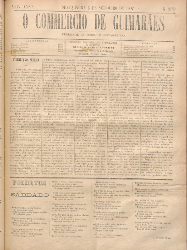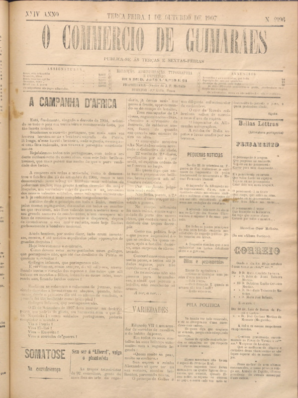 Comércio de Guimarães, nº 2196, de 01/10/1907