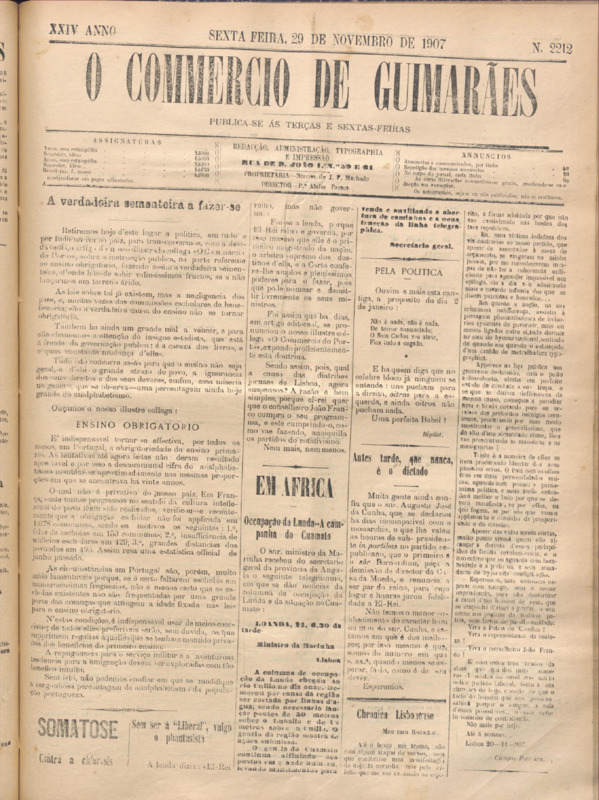 Comércio de Guimarães, nº 2212, de 29/11/1907