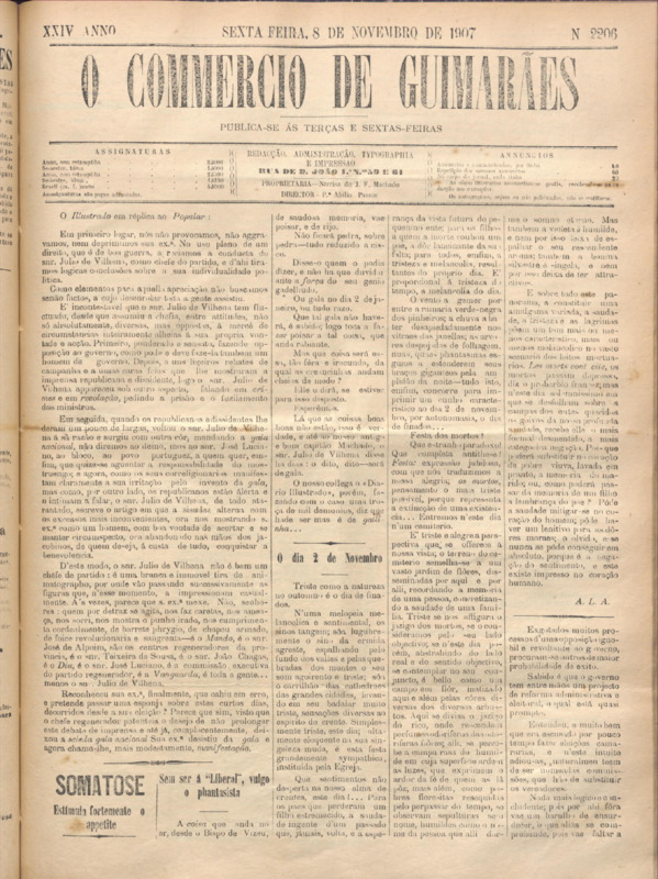 Comércio de Guimarães, nº 2206, de 08/11/1907