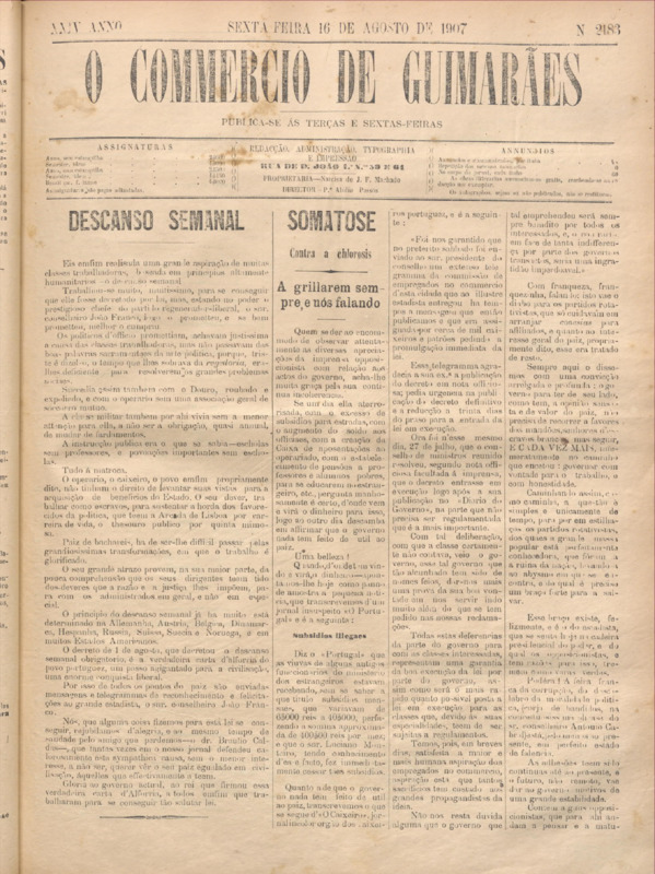 Comércio de Guimarães, nº 2183, de 16/08/1907