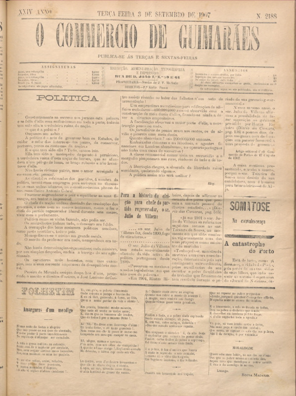 Comércio de Guimarães, nº 2188, de 03/09/1907