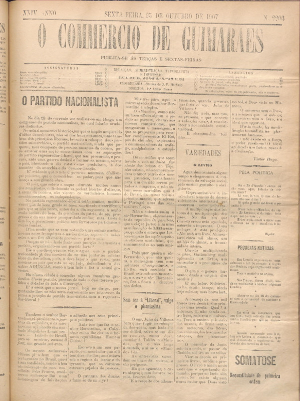 Comércio de Guimarães, nº 2203, de 25/10/1907