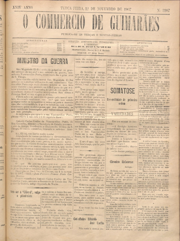 Comércio de Guimarães, nº 2207, de 12/11/1907