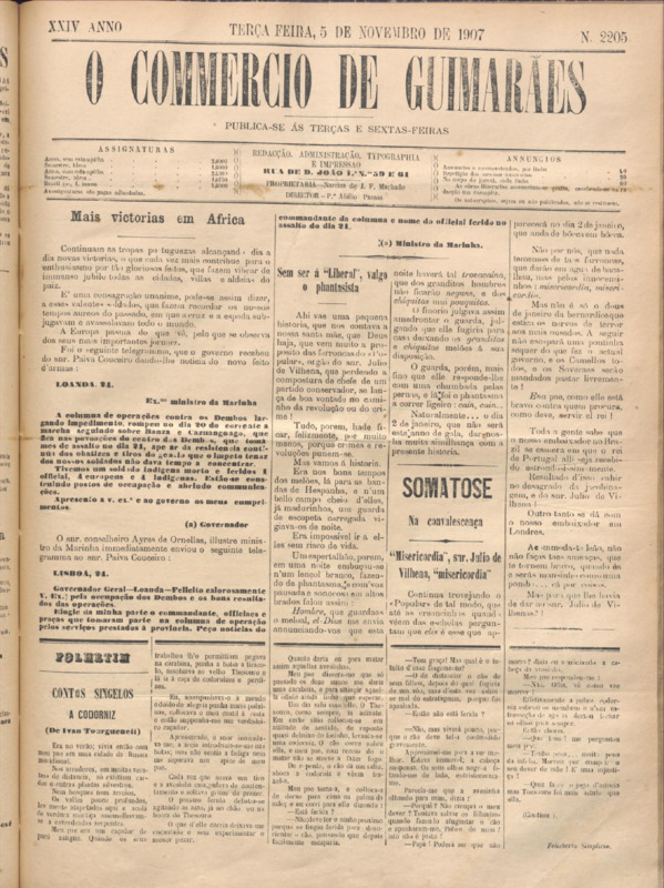 Comércio de Guimarães, nº 2205, de 05/11/1907