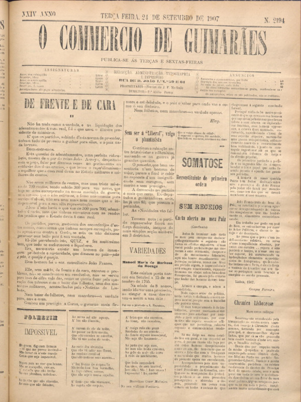 Comércio de Guimarães, nº 2194, de 24/09/1907