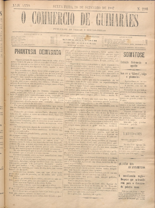 Comércio de Guimarães, nº 2193, de 20/09/1907