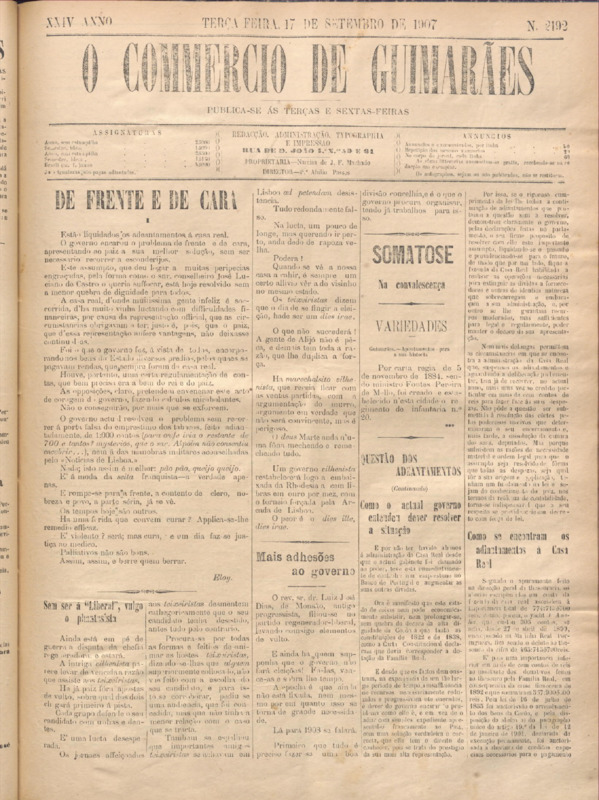 Comércio de Guimarães, nº 2192, de 17/09/1907
