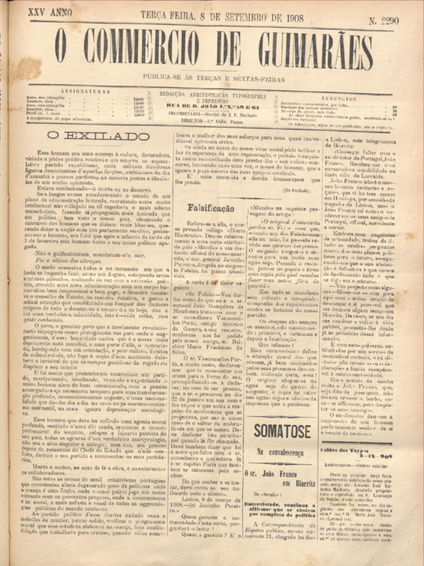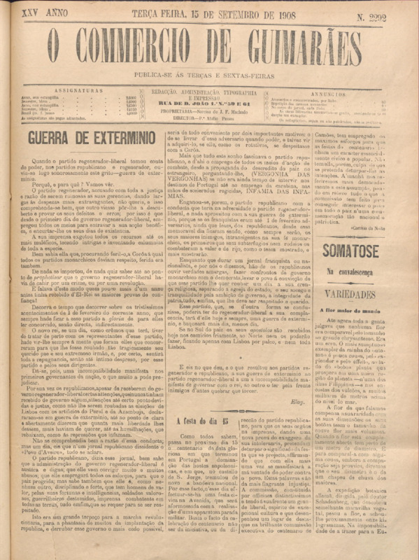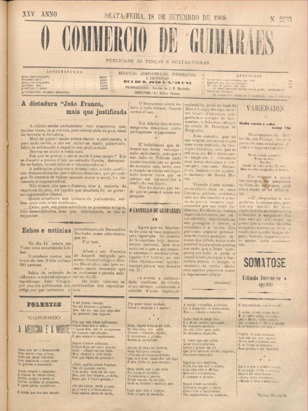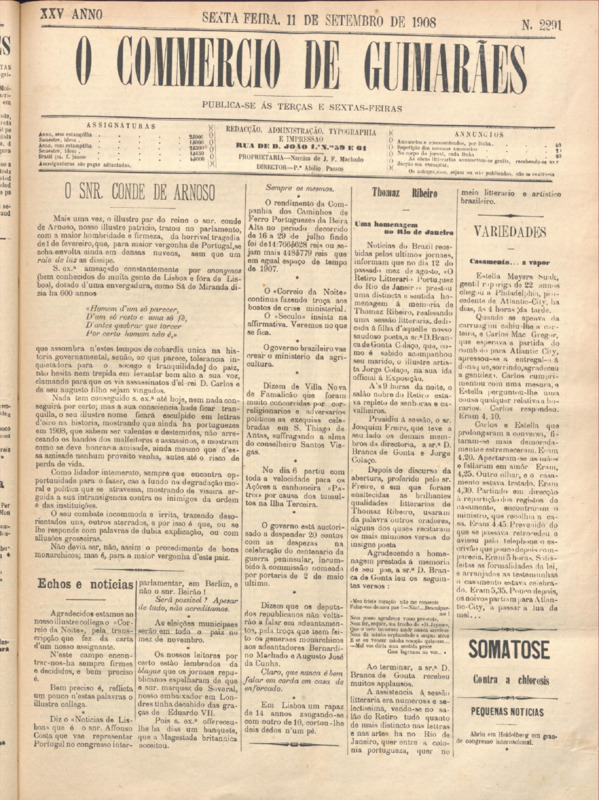 Comércio de Guimarães, nº 2290, de 08/09/1908