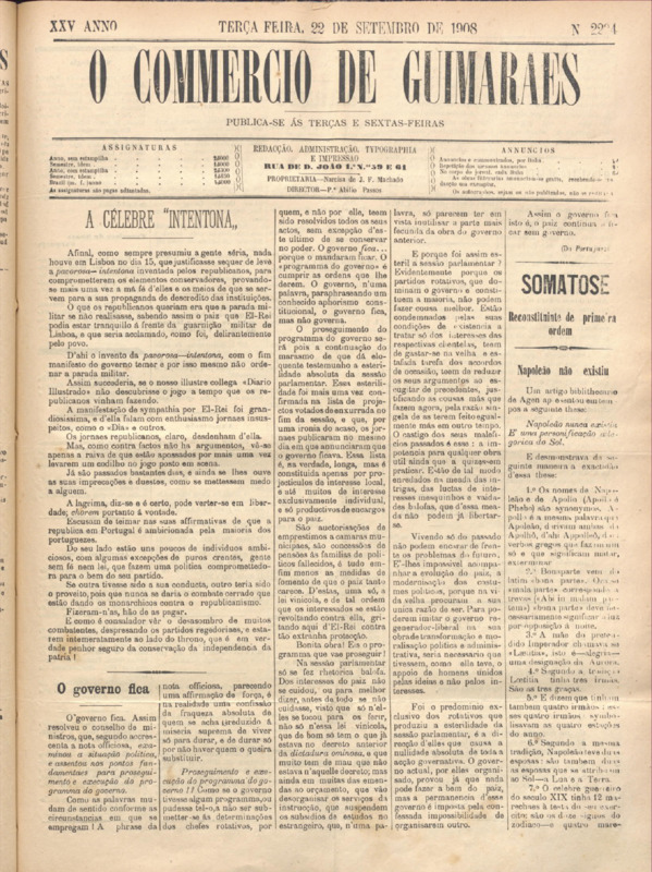 Comércio de Guimarães, nº 2295, de 25/09/1908