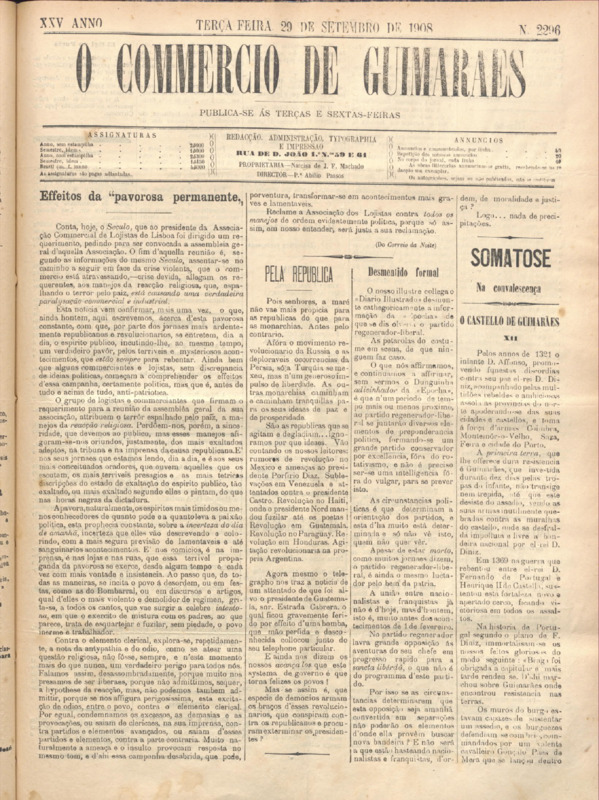Comércio de Guimarães, nº 2296, de 29/09/1908
