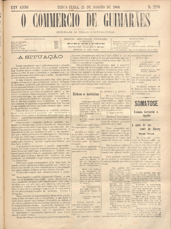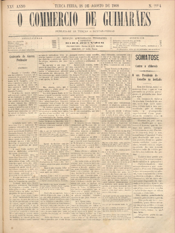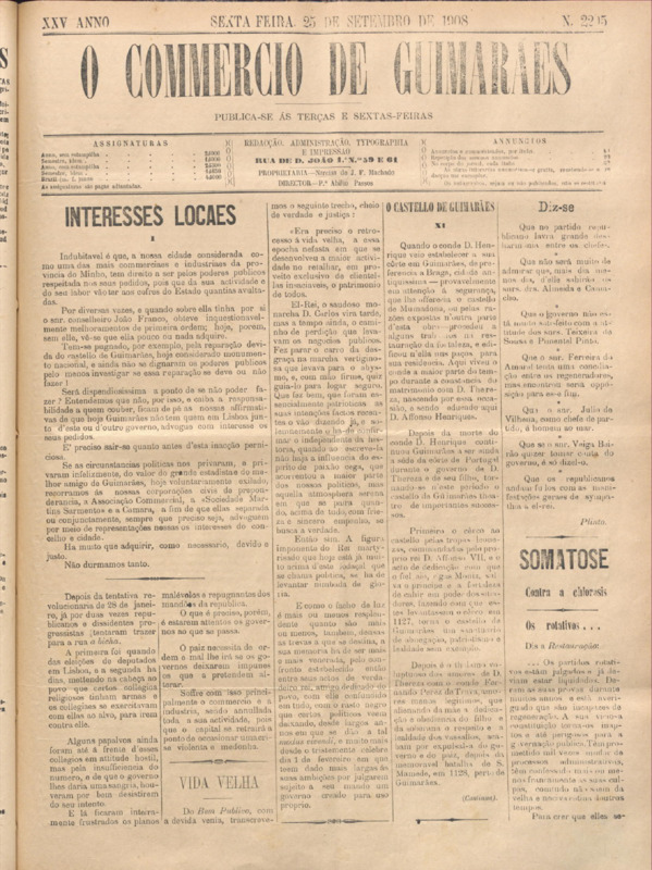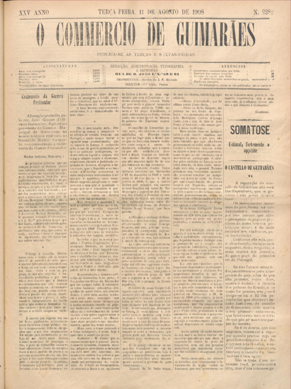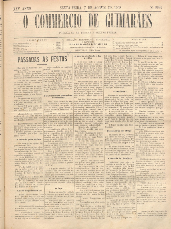 Comércio de Guimarães, nº 2286, de 25/08/1908