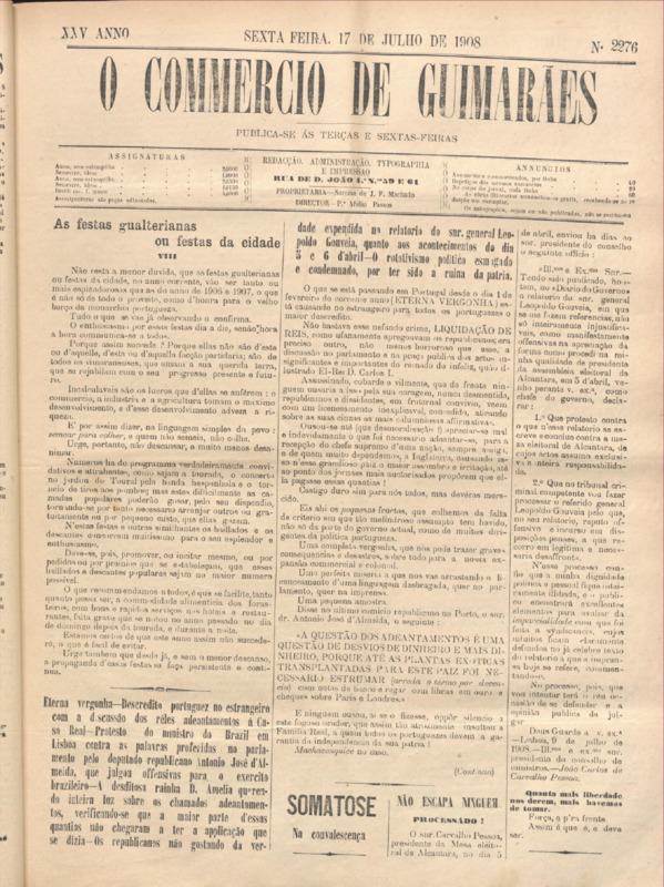 Comércio de Guimarães, nº 2276, de 17/07/1908