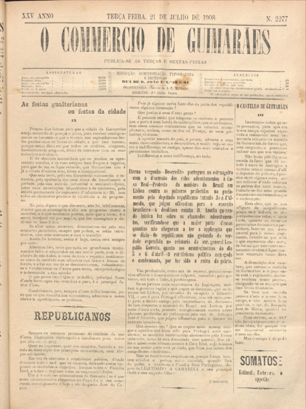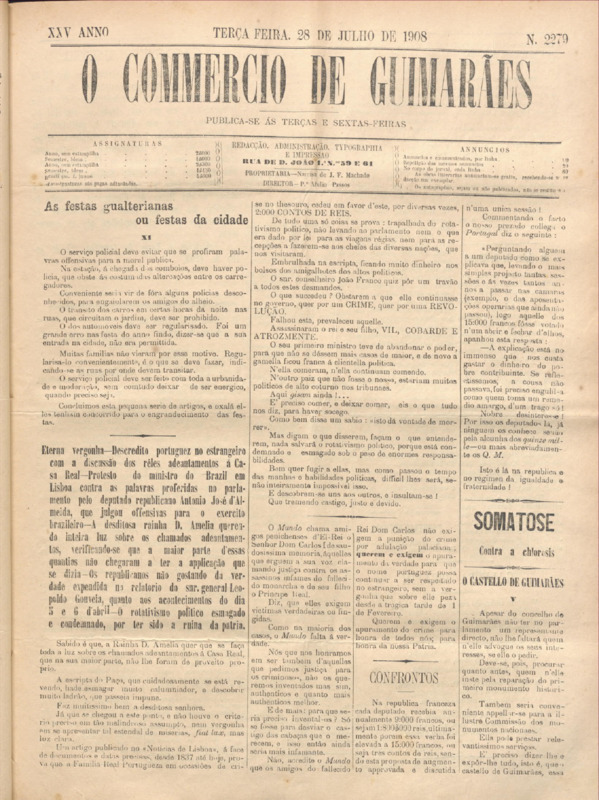 Comércio de Guimarães, nº 2279, de 28/07/1908
