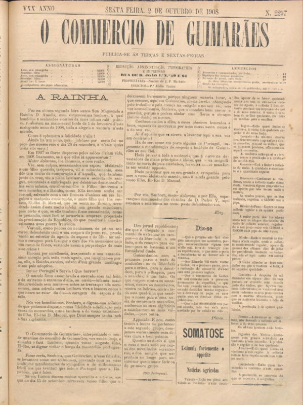 Comércio de Guimarães, nº 2297, de 02/10/1908
