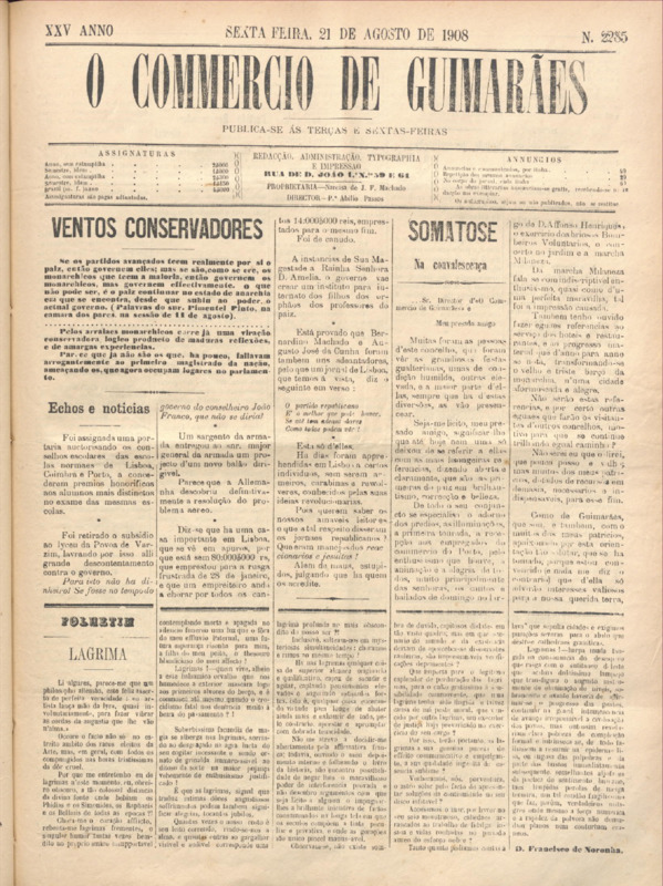 Comércio de Guimarães, nº 2285, de 21/08/1908