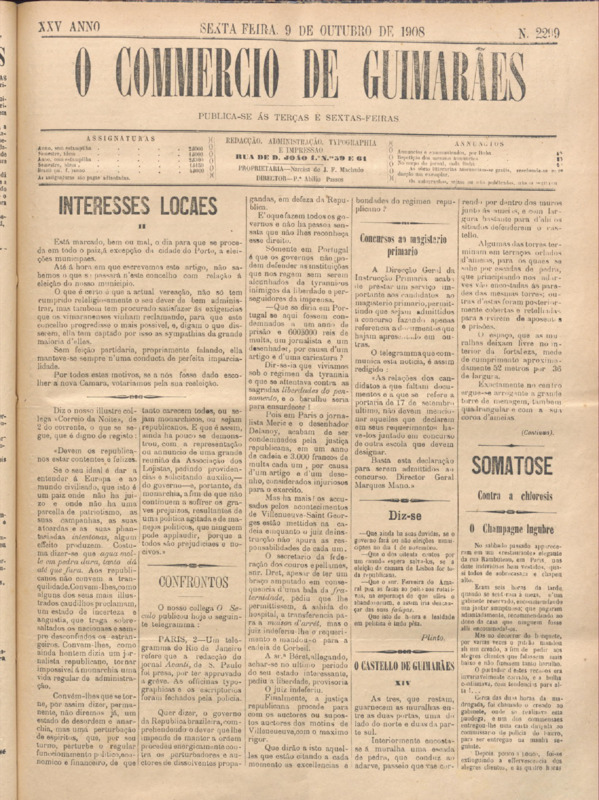Comércio de Guimarães, nº 2299, de 09/10/1908
