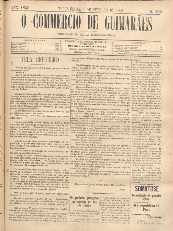 Comércio de Guimarães, nº 2298, de 06/10/1908