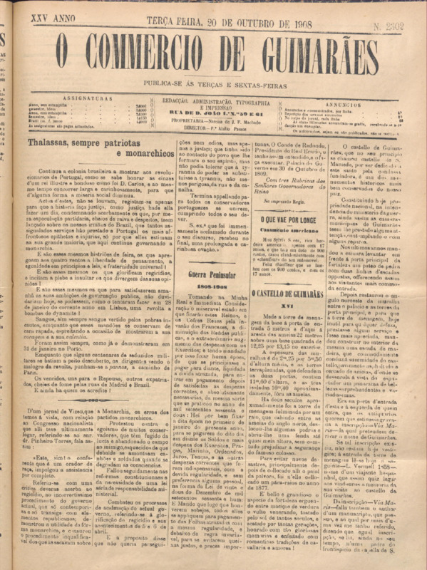 Comércio de Guimarães, nº 2302, de 20/10/1908