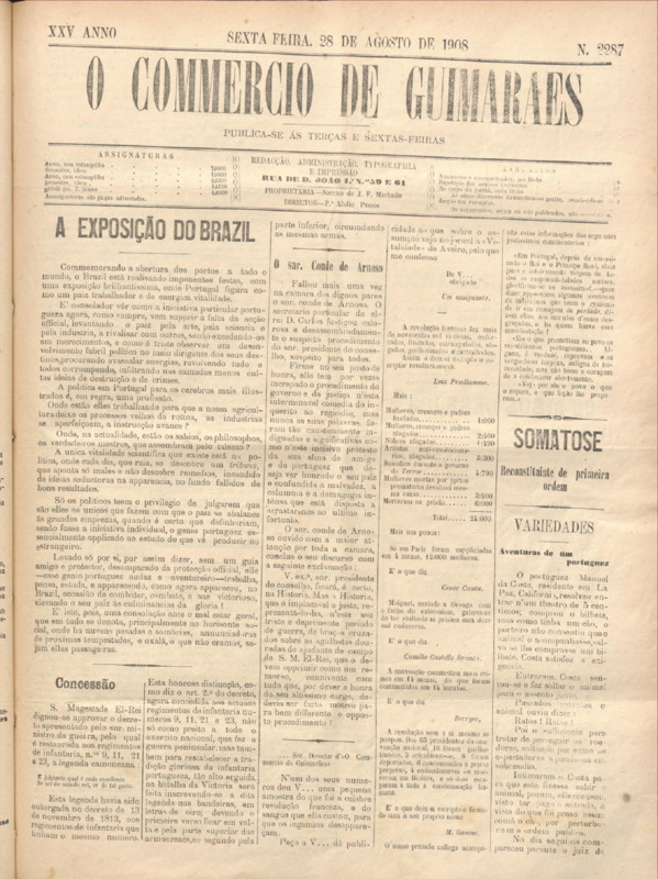 Comércio de Guimarães, nº 2287, de 28/08/1908