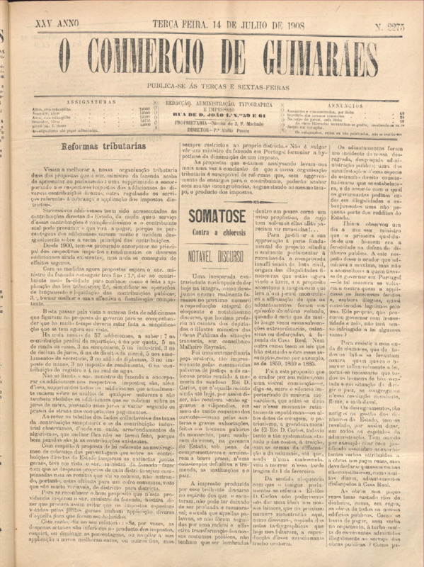 Comércio de Guimarães, nº 2275, de 14/07/1908