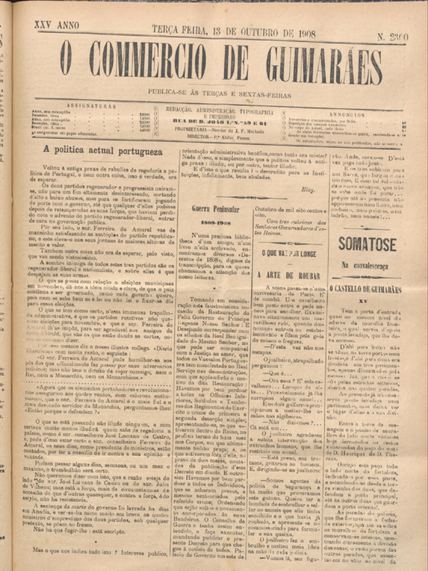 Comércio de Guimarães, nº 2300, de 13/10/1908