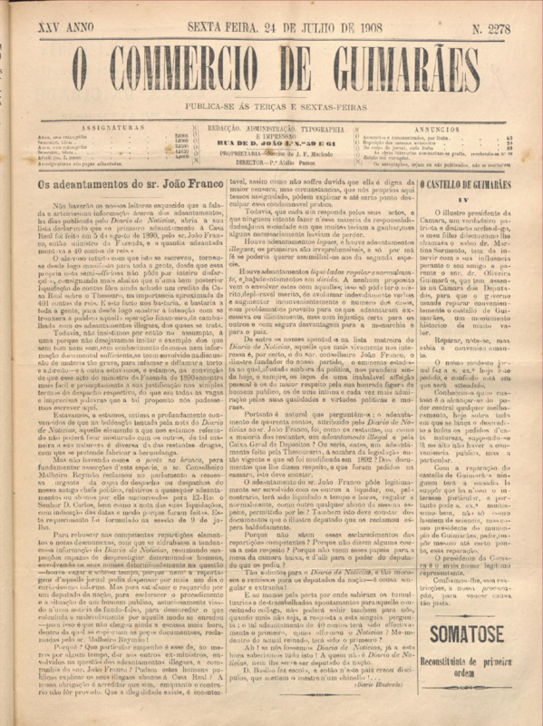 Comércio de Guimarães, nº 2278, de 24/07/1908
