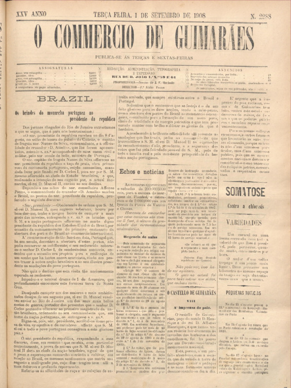 Comércio de Guimarães, nº 2288, de 01/09/1908