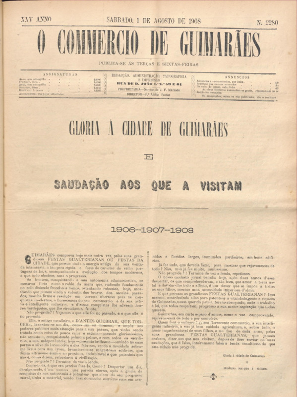 Comércio de Guimarães, nº 2280, de 01/08/1908