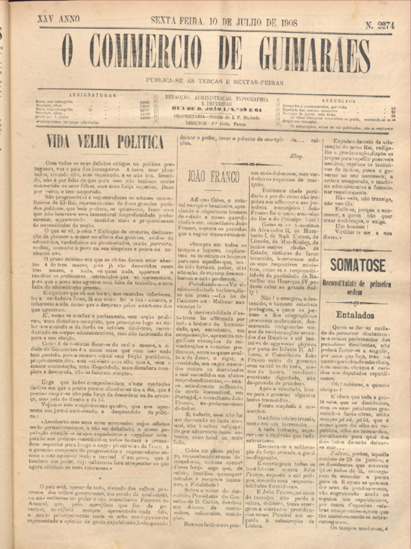 Comércio de Guimarães, nº 2274, de 10/07/1908