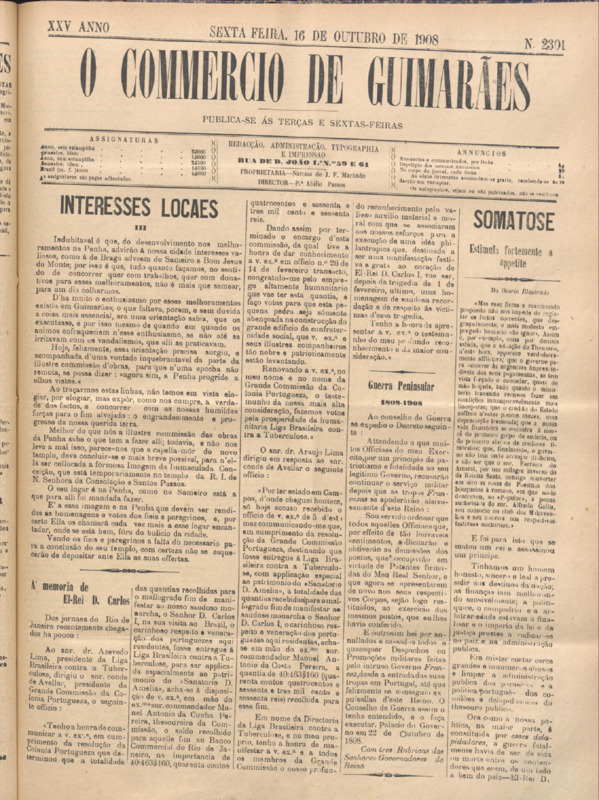 Comércio de Guimarães, nº 2301, de 16/10/1908