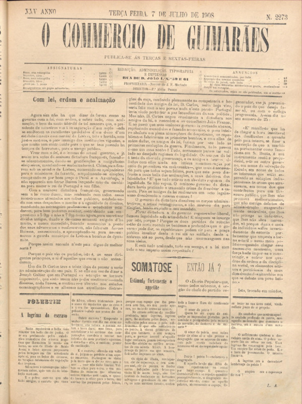 Comércio de Guimarães, nº 2273, de 07/07/1908