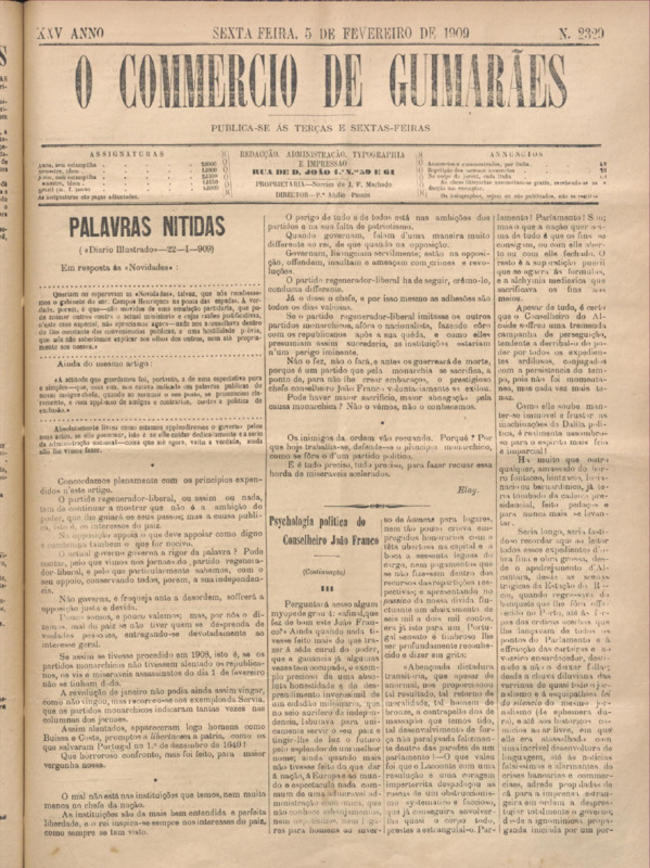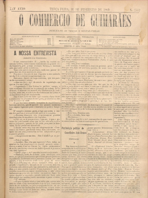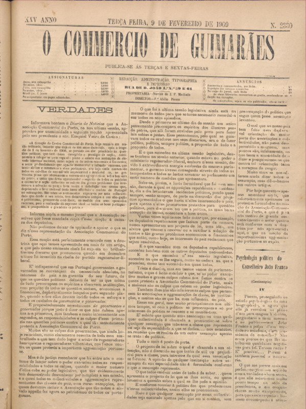 Comércio de Guimarães, nº 2332, de 16/02/1909
