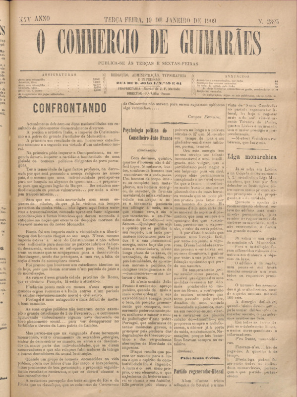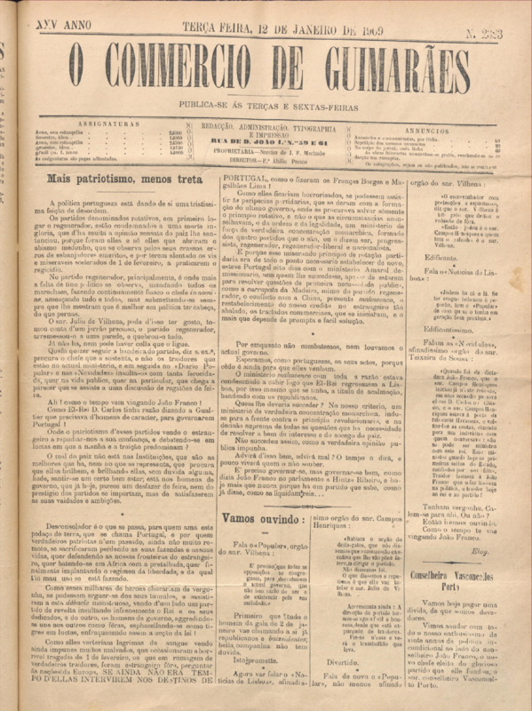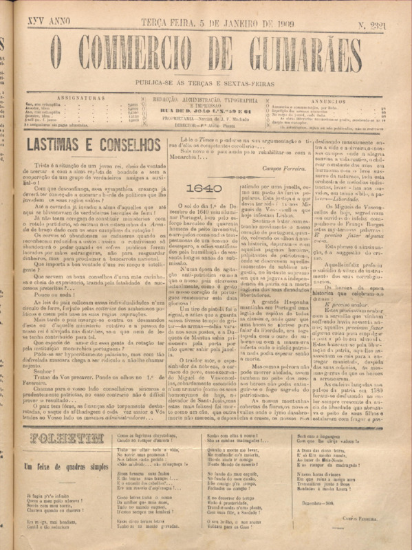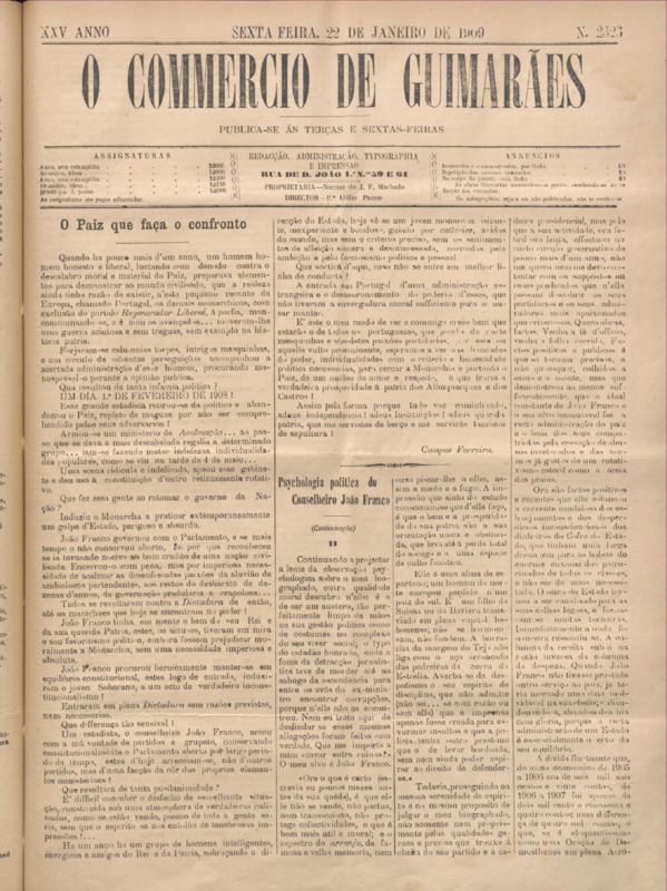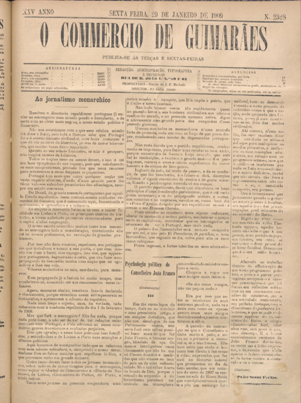 Comércio de Guimarães, nº 2325, de 19/01/1909