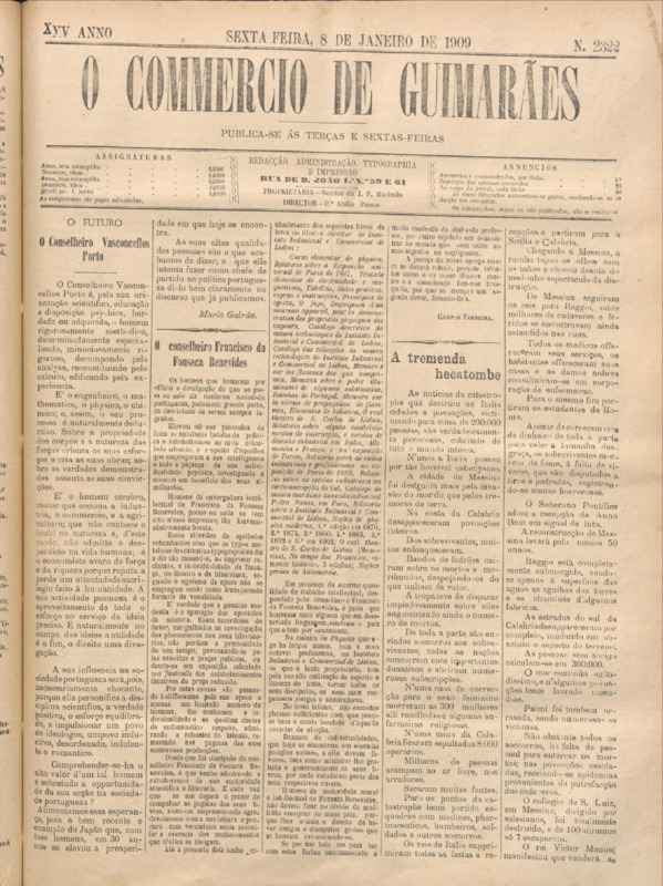 Comércio de Guimarães, nº 2322, de 08/01/1909