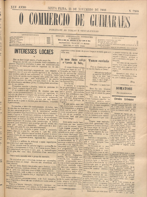Comércio de Guimarães, nº 2309, de 13/11/1908