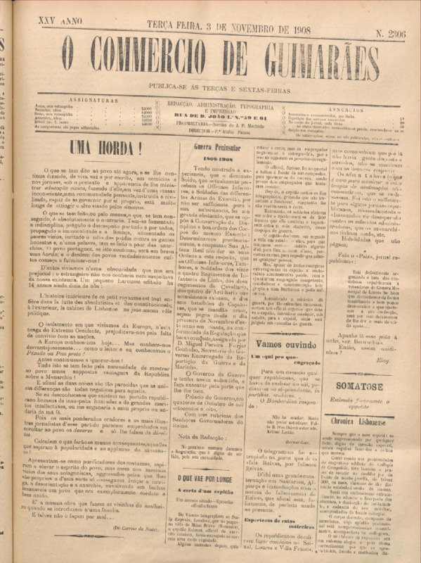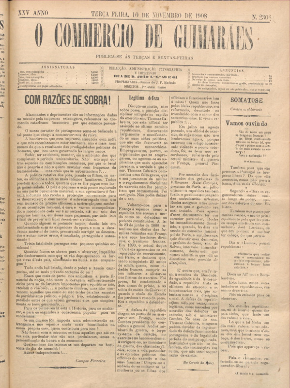 Comércio de Guimarães, nº 2306, de 03/11/1908