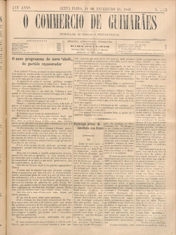 Comércio de Guimarães, nº 2333, de 19/02/1909